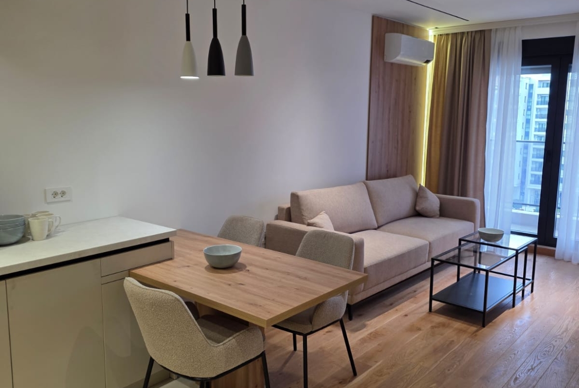 Izdaje se jednosoban, lijepo namjesten stan, povrsine 44m2, koji se nalazi u Green Level u Podgorici.