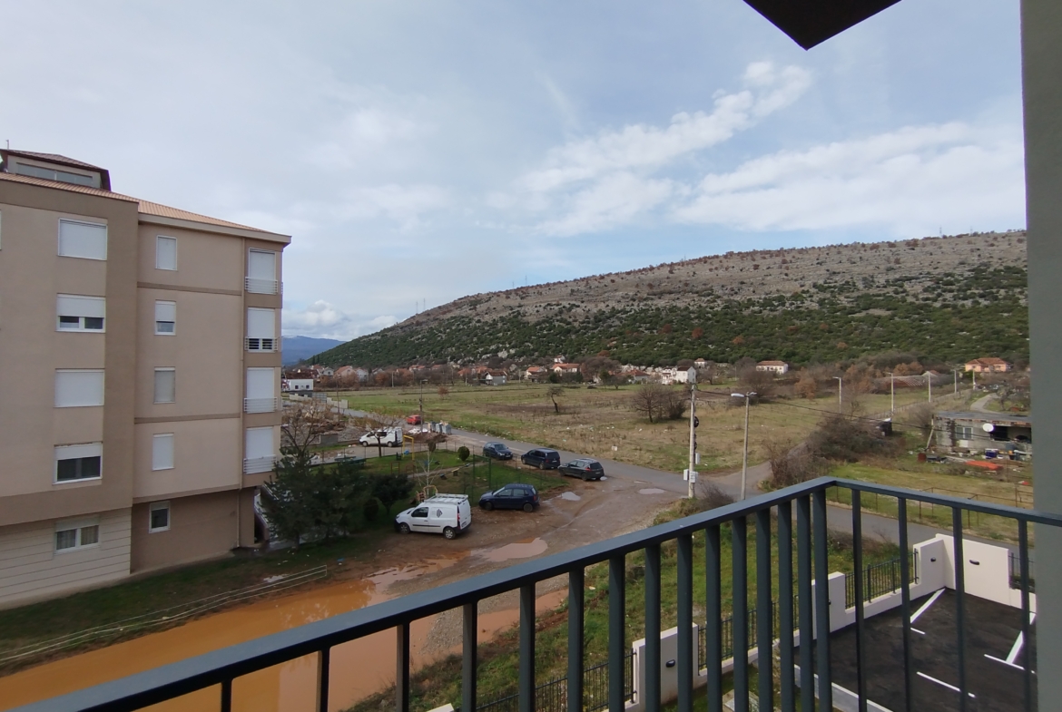 Kompletno je opremljen novim stvarima, ima terasu.